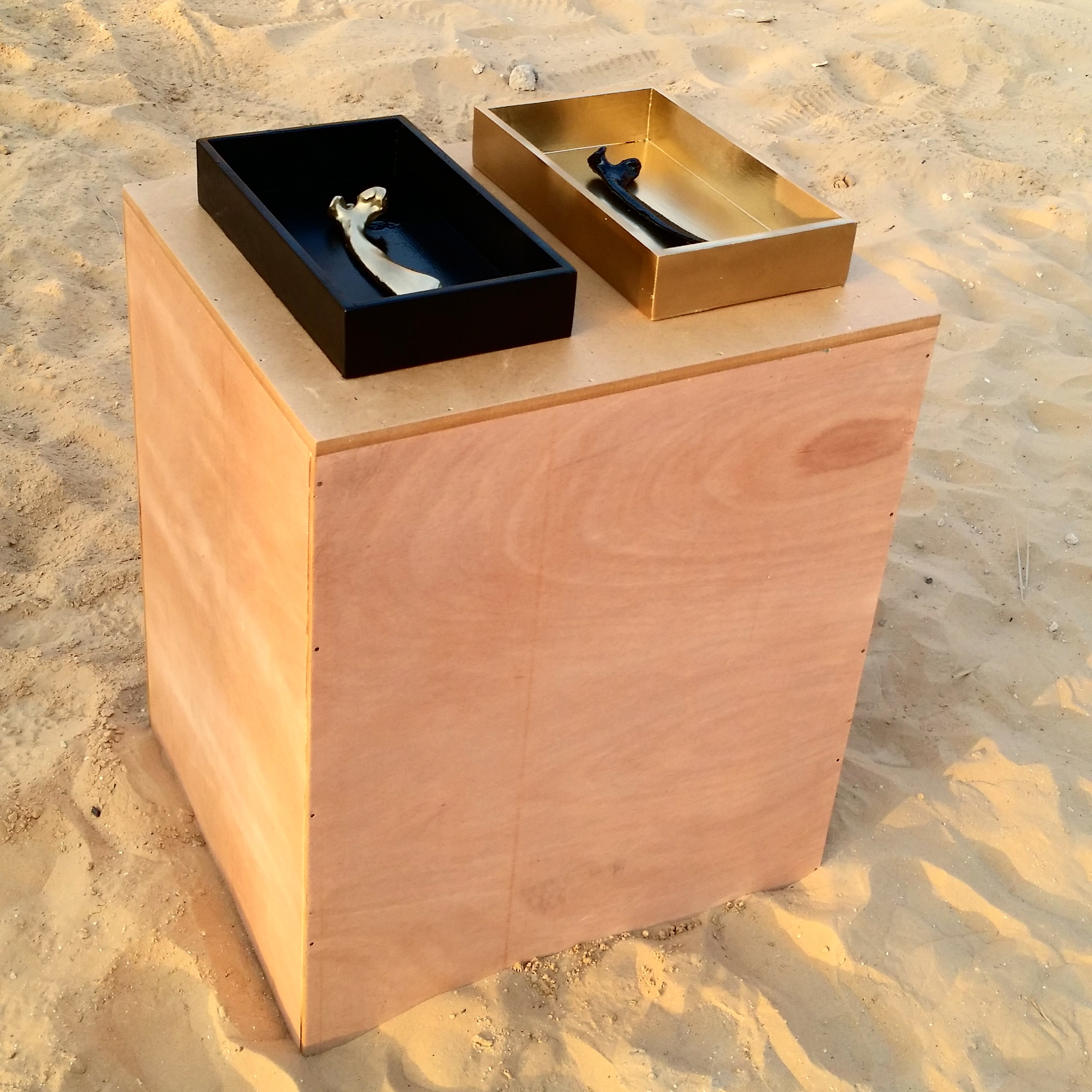 Site Specific installations at Liwa Art Hub in conjunction with ISEA Dubai2014. Liwa Oasis, The Empty Quarter. United Arab Emirates. 1. Measuring the Desert, 2014 3. Palm Burka, palm materinal, wood, fishing thread. 180 cm